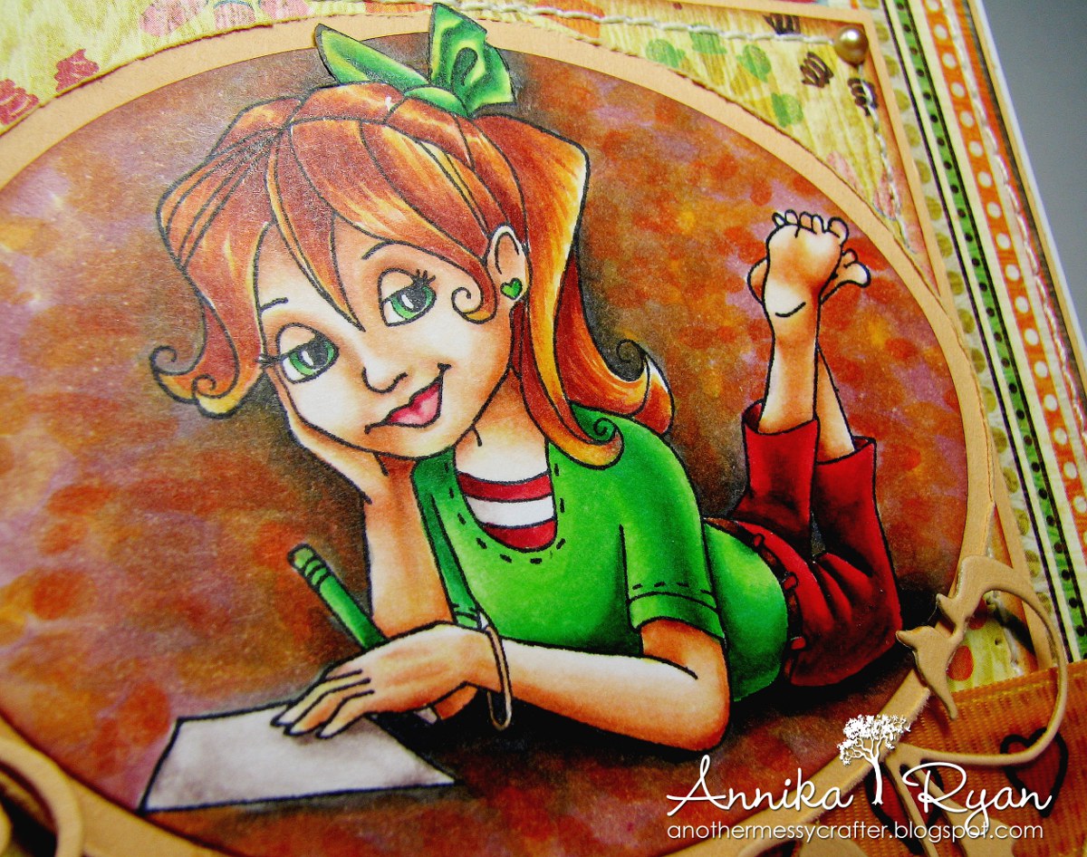 It's my first time of colouring up Victoria Case image and I really went into town with shading here - I was using Make It Colour blending card and the brilliant thing abouit that stuff is that you can REALLY go into the town with layering your Copics. I am still to see the colours bleed on that card!